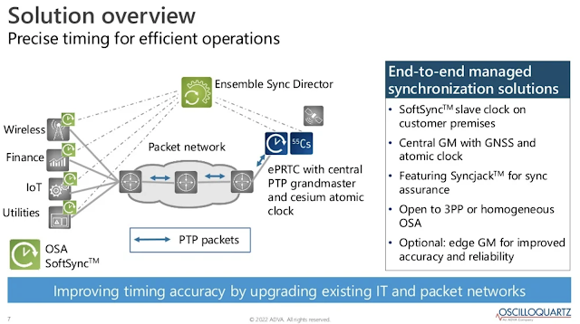 ADVA launched OSA SoftSync, a software PTP client for delivering ultra-precise and robust time for server-hosted applications. It utilizes ADVA Oscilloquartz Precision Time Protocol (PTP) technology, clock recovery algorithms, and Sync jack performance monitoring and assurance capabilities.